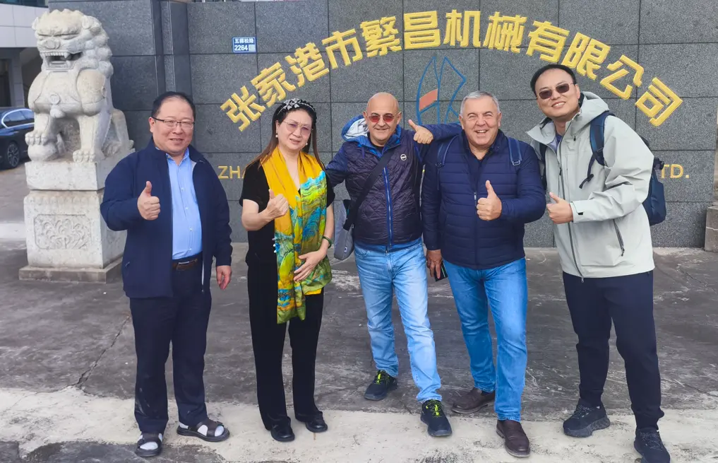 In 2025 kocht het Italiaanse bedrijf LAMPLAST SRL twee SRLW-1300/5000 volautomatische koud- en warmmengunits van ons bedrijf. Op de foto zijn de twee bazen van dit bedrijf te zien die de eindproducten in onze fabriek inspecteren.