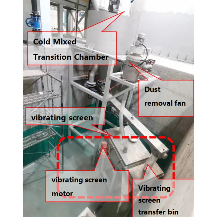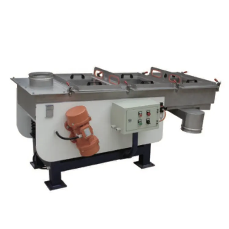 De door FANCHANG Machinery geleverde trilzeef wordt gebruikt voor het zeven van de gemengde afgewerkte materialen. Hij is voorzien van een RVS zeef aan de binnenkant en heeft aan beide zijden trilmotoren. Door middel van trillingsonderzoek worden grote deeltjes en andere onzuiverheden verwijderd en wordt het gekwalificeerde poeder in de opslagbak of het transportapparaat geloosd.